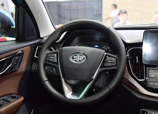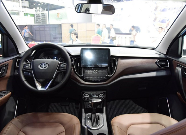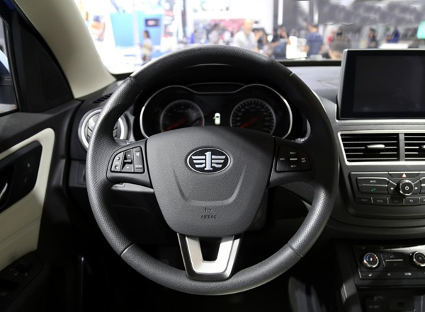 外觀方面,新車采用了較大尺寸的六邊形進氣格柵,并采用了大量的鍍鉻裝飾橫幅進行修飾,中間還嵌有一汽的品牌LOGO。大燈采用了開眼角的設計,并與中網(wǎng)相連,以增強車頭的橫向視覺寬度。車身側面的造型和同平臺的森雅R7十分相似,車身尺寸方面,新車的長寬高分別為4310×1780×1680mm,軸距為2600mm。僅車門下方黑色護板的線條有細微差別。同時,新車還換裝了一套雙五輻式輪圈。保險杠兩側的方形仿氣孔造型與奔騰X80保持了統(tǒng)一,而后保險杠下方則是黑銀雙色的下護板。尾燈造型在平行四邊形的基礎上剪去內(nèi)側兩角,造型十分新穎。