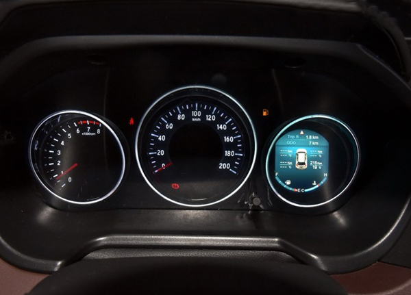 內(nèi)飾方面,森雅R7自動版內(nèi)飾采用了豪車常用的環(huán)抱式風格,森雅R7自動擋車型提供黑/棕、黑/銀兩種內(nèi)飾配色,中央控制區(qū)搭載9英寸懸浮式液晶屏,整體造型立體鮮明。內(nèi)飾利用IMD表面裝飾技術進行處理好處是使用壽命長,且防塵防潮性好,覆蓋了大面積的木紋裝飾件和鋼琴烤漆面板,這兩種材質都是提升內(nèi)飾高級感之必備武器。