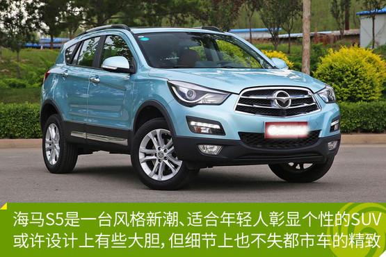 海馬S5是一臺造型及色彩新潮、適合年輕人彰顯個性的SUV。外型設計上非常大膽,經過特別設計的大燈顯得十分別致,大尺寸的倒梯形格柵和巨大的品牌LOGO就更是毫無收斂可言了。