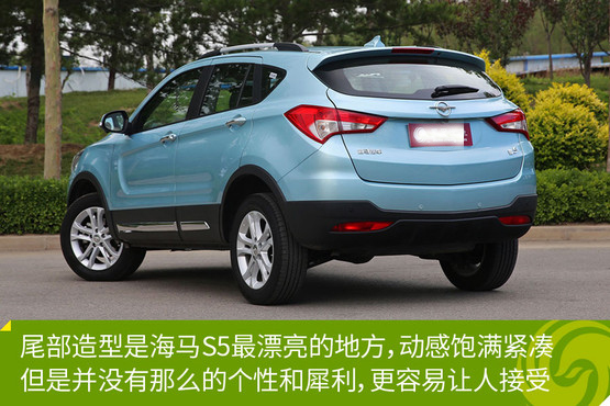 車身側面內凹的設計起到了很好的過渡作用,將上部的腰線與下部的棱線自然地連接起來,不僅很好的處理了線條,也凸顯了S5的力量感。尾部造型是海馬S5最漂亮的地方,動感飽滿緊湊,但是并沒有那么的個性和犀利,相信可以贏得更多朋友的認可。
