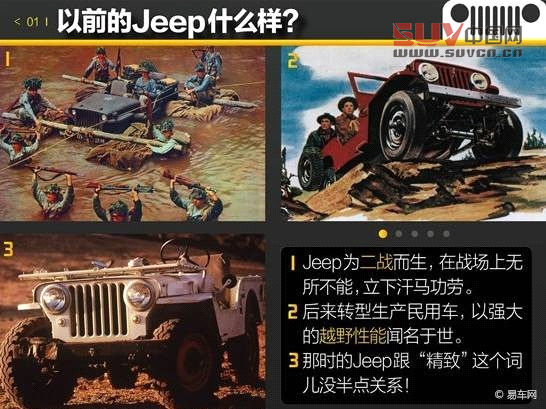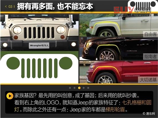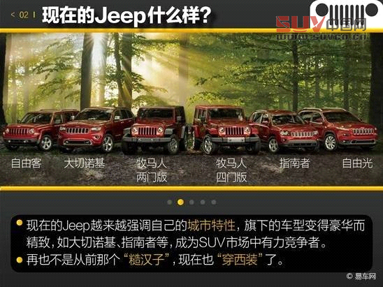可能是由于Jeep品牌誕生的歷史以及它與二戰之間的那些傳奇故事,“硬派越野”就像一頂大帽子,扣在Jeep的腦袋上拿不下來。女大還能十八變,怎地Jeep就得“守身如玉”一輩子?某服裝品牌說得好:男人不止一面。這樣才能吸引不同類型的妹子。人家Jeep現在也不只一面了,目的很明確:這樣才能吸引不同類型的客戶,才能滿足客戶需求!下面,咱就來見識見識Jeep跟從前如何不同,幫你了解現在的Jeep又擁有哪些不同“面”?哪一面才是自己的菜?