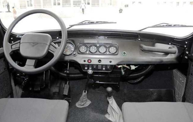 內(nèi)飾方面只能用簡陋兩字來形容了,全部采用的是廉價(jià)的硬塑料但是這款車主打的是情懷和性能。車內(nèi)儀表盤多達(dá)5組因?yàn)槭遣捎玫姆謺r(shí)四驅(qū)的驅(qū)動(dòng)方式所以也有兩組檔桿。這款車14萬的售價(jià)性能卻不輸40萬的車型。