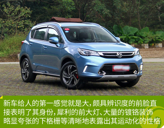 頗具辨識(shí)度的前臉直接表明了其風(fēng)神SUV的身份,犀利的前大燈、大量的鍍鉻裝飾、略顯夸張的下格柵以及立式的LED日間行車燈,清晰地表露出其運(yùn)動(dòng)化的性格。發(fā)動(dòng)機(jī)蓋中央隆起的造型、保險(xiǎn)杠兩側(cè)富有立體感的處理,讓車頭看上去更具張力、更有力量感。