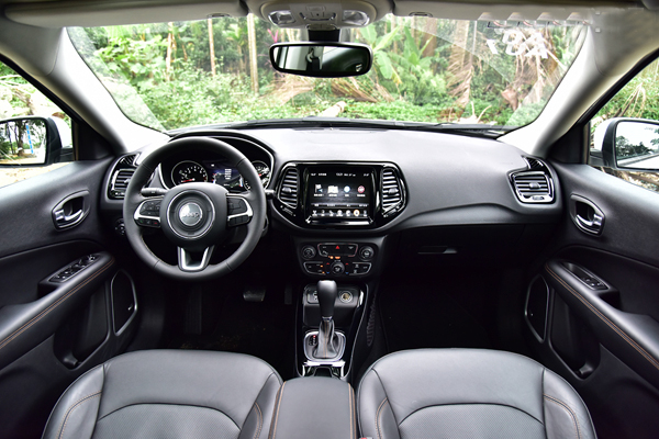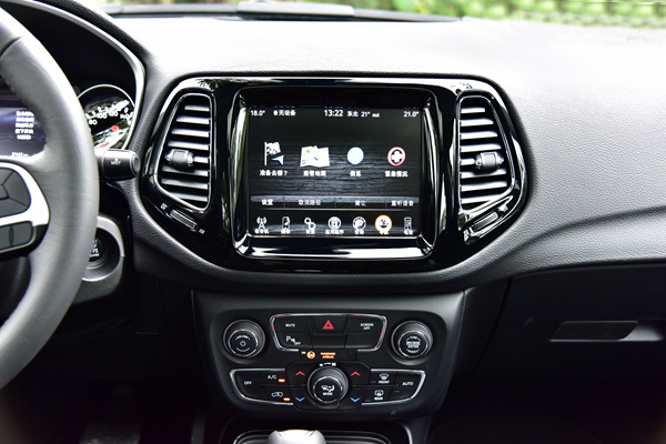 內(nèi)飾大量使用軟性材質(zhì),方向盤底部還用柔軟的海綿遮擋,此外中控臺在設(shè)計時,明顯可以看到為了給主駕駛留有更多的空間,將中央液晶屏向副駕駛側(cè)移動了一些。普通版和Trail Hawk版本前排的USB接口位置不同,但易用性差不多,中央扶手內(nèi)設(shè)有USB接口,還為線纜預(yù)留凹槽。8.4英寸液晶屏兩款車均有配置,采用Uconnect系統(tǒng),支持連接手機,使用預(yù)制的四個程序,分別是百度地圖、大眾點評、酷我音樂以及墨跡天氣。其他方面,1.4T車型使用ALPINE音響,2.4L車型則使用BeatsAudio音響。
