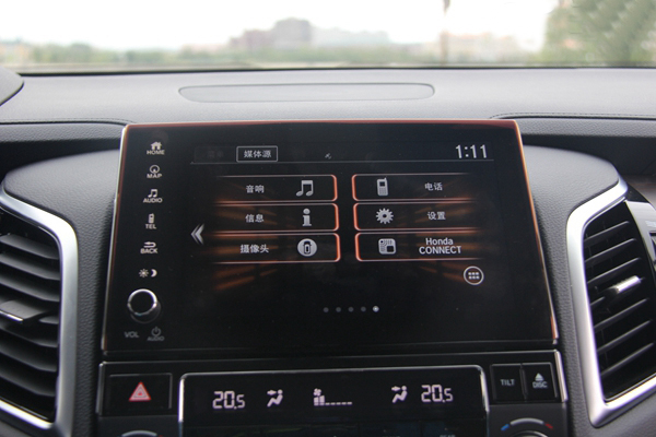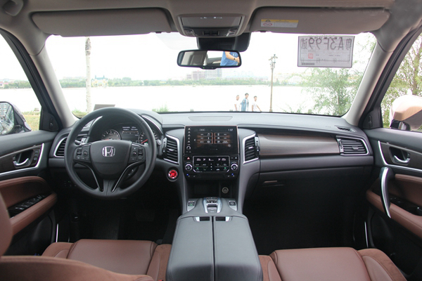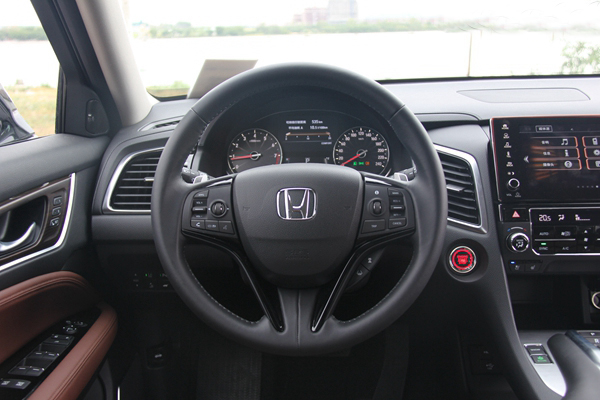 內(nèi)飾部分,冠道的內(nèi)飾在設(shè)計風格上沿用了本田的家族式設(shè)計,中控臺采用了對稱式設(shè)計,在細節(jié)上進行了優(yōu)化,軟質(zhì)材料和木紋裝飾的內(nèi)飾看上去顯得很有質(zhì)感。中控臺上配備了一塊多媒體屏幕,除了帶有音量調(diào)節(jié)功能的開關(guān)鍵外為實體按鍵為,其余功能均為觸摸操作。另外值得一題的是,2.0T車型取消了傳統(tǒng)的機械式換擋機構(gòu),取而代之的是更有科技感的按鈕式換擋,設(shè)計很新穎。