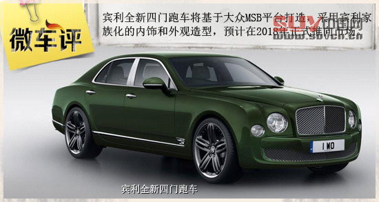 目前四門跑車作為新興的車型備受市場的親睞,賓利此番計劃推出的車型將有望成為未來四門跑車市場的頂級車型。據悉,全新的賓利四門跑車將基于大眾MSB平臺打造而來,該平臺上最先推出的將是2015年全新一代的保時捷Panamera。賓利搭載的發動機陣容為V6汽柴油發動機。