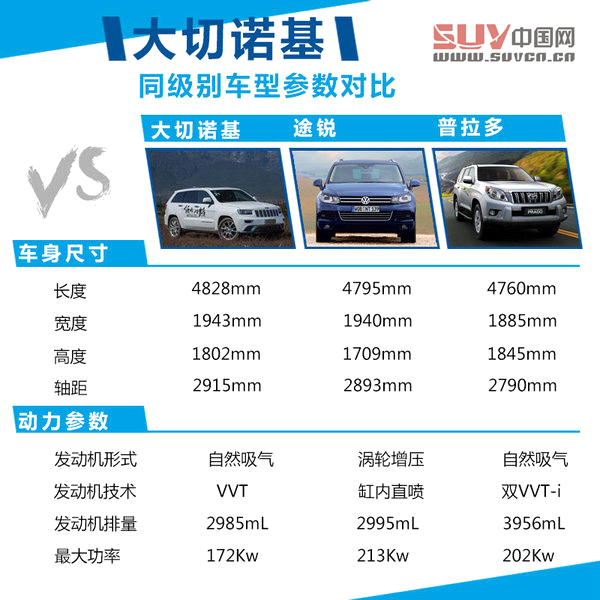 首先JEEP大切的尺寸可算不上小了,很多人在城市中看到大切的身影后都會被其龐大的身體所震懾住,畢竟是家族中的旗艦產品,所以尺寸一定要具有競爭力。