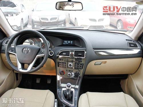 內飾方面,中華V5的內飾采用了上深下淺的居家風格設計,雙L形勾勒的中控臺使用亮面裝飾的視覺效果十分不錯,但色彩有些單調。軟質的覆蓋材料也有著不錯的手感。多功能方向盤的樣式比較運動,V字形的鍍鉻裝飾也讓整個方向盤的檔次提升不少。整體內飾無論是造型還是材質的使用都有不錯的表現。