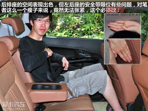 配置方面,相比上面的兩款車型,陸風X5則讓人覺得有點寒酸,不過相對低廉售價還是可以理解的。在安全配置方面,全系車型中除了標配前排雙安全氣囊、ABS防抱死、制動力分配EBD等配置外,高配車型只是配備了前排側氣囊、倒車雷達,所以在安全配置方面個人覺得有待進一步提升。另外,舒適性配置方面,陸風X5也只是配備了比較常用的電動天窗、真皮座椅、座椅高低調節、第二排靠背角度調節、前后中央扶手、后視鏡電動調節等配置。