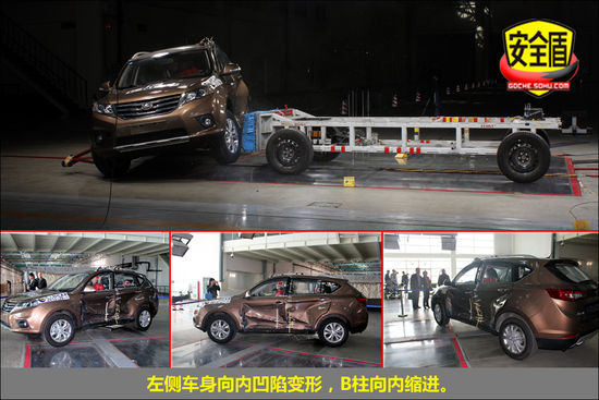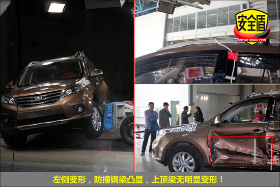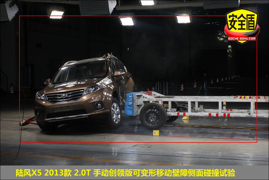 10月23日下午2點,中國汽車技術研究中心碰撞實驗室對江鈴控股有限公司生產的江鈴牌JX6461L型多用途乘用車(陸風X5 2013款 2.0T 手動創領版)完成了“可變形移動壁障側面碰撞試驗”。