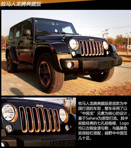 Jeep作為專門打造SUV車型的品牌,其早已有著悠久的歷史文化,旗下牧馬人也是Jeep主打越野性的車型之一。在2103年成都車展上,Jeep推出了牧馬人十周年紀(jì)念版車型,隨著廣州車展的日益臨近,Jeep還將推出一款牧馬人龍騰典藏版車型來專供中國市場。新車采用了中國獨(dú)有的“龍”元素作為設(shè)計理念,配合古銅金顏色的搭配,運(yùn)動中彰顯出濃郁的中國風(fēng)。