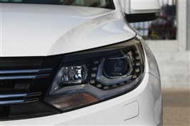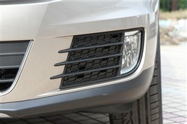2013款途觀的外觀變化主要集中在前大燈和霧燈,重新設計的前大燈加入了LED日間行車燈,整體造型更加犀利和醒目;霧燈也由原先的圓形變成了方形刀狀設計,這種新的元素有些類似高爾夫GTI,十分動感。2013款途觀的長寬高分別為4506/1809/1685mm,軸距為2684mm。與老款車型相比,長度減少了19mm,而軸距并沒有變化。在車身數據上與主要競爭對手本田CR-V及翼虎相比,2013款途觀并不占優。