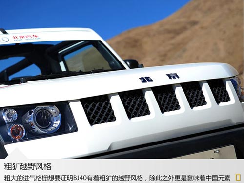雖然在一開始BJ40就被眾多“觀眾”戴上了模仿的光環,但是北汽顯然有自己想法,營造硬漢風格的SUV本身就是直線條,找不出別的設計方式,更何況進氣格柵更像是中國長城造型的一種演變。大燈并沒有過多復雜的設計元素,簡單實用已經足以說明質樸的性格。