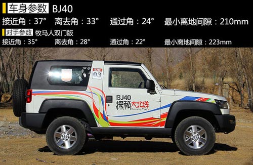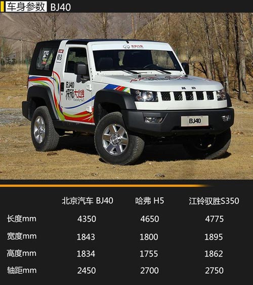 我絞盡腦汁的想了半天才找出能與BJ40相對位的兩款越野型SUV車型,不過盡管是這樣BJ40在車身尺寸方面還是不夠與之相提并論,當然這也跟雙門版有些關系,并且BJ40從一出生就已經向著純越野車定位的,所以上述所謂的競聘僅供參考。