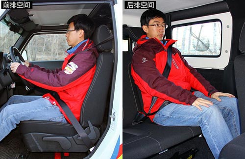 雖然是一款軸距僅有2450mm的兩門車型,但BJ40在前后排乘坐空間上還是不錯的。另外,BJ40在第二排乘客便利性上設計得還有一些可以提升的地方,應該加個有地方扶手的設計。