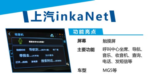 MG5在本屆廣州車展上推出了增壓版車型,并將inkaNet 3G智能網(wǎng)絡(luò)行車系統(tǒng)升級為3.0版本。其擁有三網(wǎng)覆蓋功能,支持WCDMA 3G、藍(lán)牙2.1及WIFI熱點全網(wǎng)覆蓋。iVoka語音云駕駛系統(tǒng)實現(xiàn)了智能“人車對話”,搜索導(dǎo)航、音樂播放、收發(fā)短信等口令它可以隨時回應(yīng)。