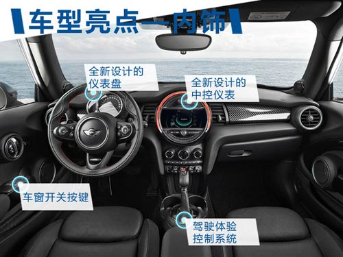 內(nèi)飾方面,全新MINI將更重視實(shí)用性及舒適性,設(shè)計更大車內(nèi)空間,采用“懸浮式”中控臺以及更時尚的出風(fēng)口造型。值得一提的是,全新MINI的整體內(nèi)飾可根據(jù)基本或互動模式的調(diào)節(jié)變換裝飾燈光顏色,這也體現(xiàn)了MINI設(shè)計更加注重駕駛樂趣。