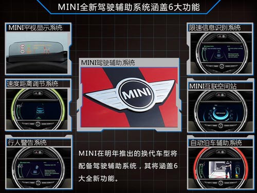 據(jù)了解,新一代MINI車型中將首次配備的智能駕駛輔助系統(tǒng),由三個不同才做系統(tǒng)所組成,分別是MINI平視顯示系統(tǒng)、帶制動功能的碰撞和行人警告系統(tǒng)、駕駛者輔助系統(tǒng)。此外,新一代MINI還配備限速信息識別系統(tǒng)、速度和距離調(diào)節(jié)系統(tǒng)以及自動泊車輔助系統(tǒng),這些功能的加入將使駕駛者操作起來更加便捷。