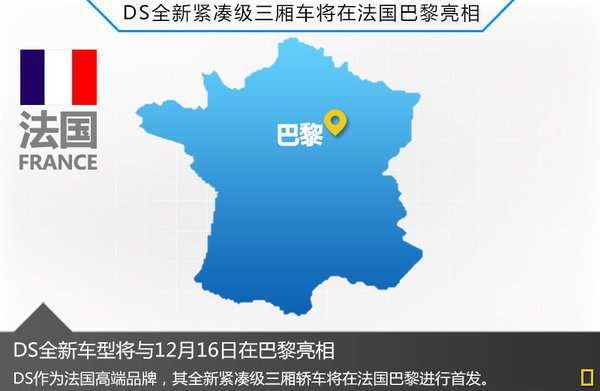 DS作為首個進入中國市場的法國豪華品牌,目前旗下DS3、DS4以及DS5等車型均為兩廂布局,為在更豐富旗下產品覆蓋領域,其將推出首款采用三廂設計的全新戰略車型。對于新車型的亮相時間,網通社從長安標致雪鐵龍官方獲悉:DS品牌全新緊湊級三廂車將于12月19日在法國巴黎正式發布。并且長安標致雪鐵龍有限公司副總裁蔡建軍先生此前向網通社表示:“為了更加適應中國消費者的需求,我們將在2014年國產一款與DS4同級別的三廂緊湊級轎車”