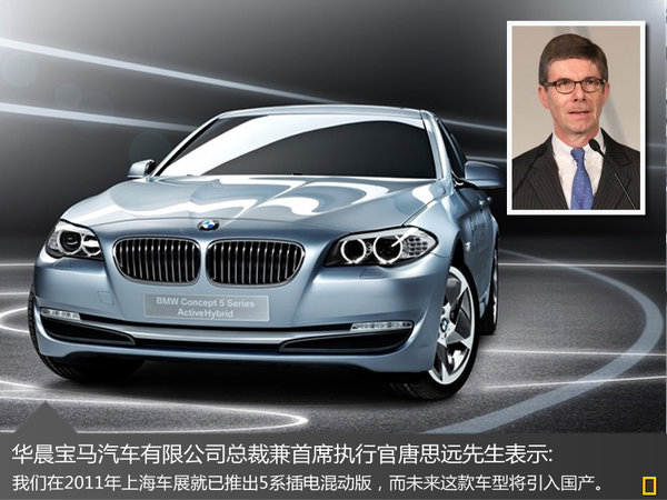早在2011年上海車展上寶馬5系插電混動版車型已與消費者見面,華晨寶馬總裁兼首席執行官康思遠先生表示:“這款插電式混合動力原型車是寶馬在中國電動車戰略的重要組成部分,也是寶馬加大本地研發和本地化力度的成果,充分體現了我們‘中國源,為中國’的新能源車戰略以及我們對中國未來的承諾。”新車將有望在未來國產,國產后售價將大幅降低。