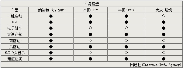 最后來(lái)談?wù)勑詢r(jià)比,與之售價(jià)相同的大眾途觀采用了1.8T引擎,動(dòng)力上沒(méi)有納智捷 大7 SUV強(qiáng)勁,并且配置上也沒(méi)有拉開(kāi)差距,更不談途觀目前仍在加價(jià)的手段。而與另外其他兩款相比,雖然貴出了7000元,但是卻得到了電子駐車、HUD顯示系統(tǒng)、座椅加熱、電動(dòng)尾門、并線輔助、夜視系統(tǒng)等配置,顯然這7000元花的更為超值。