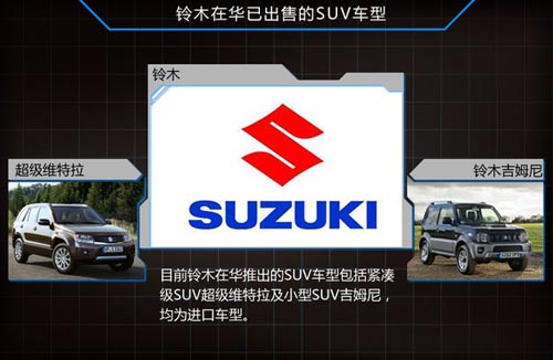 目前鈴木推出的SUV車型,包括緊湊級SUV-超級維特拉及小型SUV吉姆尼,兩者均為鈴木進口車型。吉姆尼與JEEP牧馬人相似屬于硬派越野車但尺寸更小并且排量僅為1.3L,在今年的東京車展上,鈴木展出了第四代吉姆尼的藍圖版本—鈴木X-LANDER概念車。未來國產的吉姆尼極有可能在該款概念車的基礎上進行設計研發。待吉姆尼國產后,將進一步擴充鈴木在中國市場的小型SUV產品序列。
