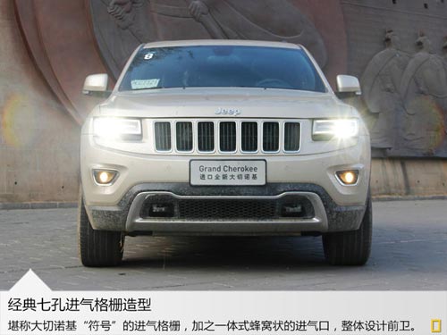 全新大切諾基的外觀,新車仍采用Jeep品牌一貫的硬朗設計語言,七孔狀的進氣格柵使車輛整體豪華感得到質的提升。此外極具運動性的前臉設計,讓人們在第一眼看到它時,便有一種想“駕馭”它的沖動。
