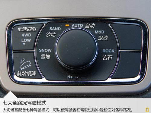 值得一提的是,此次進口的全新大切諾基將為駕駛者提供多種操作模式。例如創造同級別SUV車型唯一的涵蓋公路、越野和經濟三大駕駛類型需求,包括經濟、自動、運動、雪地、沙地、泥地和巖石共7大駕駛模式, 而這7大模式將會在我們后面為大家介紹的越野路段體驗中得到充分的詮釋。