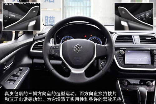 內飾部分的設計比較簡單,功能性沒有問題。全黑內飾搭配銀色裝飾條是鈴木的標準配置,突出運動基因。三幅方向盤集成有多功能鍵和換擋撥片,在同屆別SUV車型中并不常見。在配置方面,鋒馭全系標配一鍵啟動和車身穩定控制系統,顯得非常厚道,在精英版上還能找到導航、倒車影像、自動空調等豪華配置,特別是全景天窗,非常有吸引力。