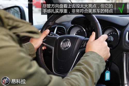昂科拉的內飾依然給人越級豪華的感受。真皮、木質、鍍鉻、軟質材料的大量使用使昂科拉的內飾感受明顯領先于同級競爭對手,做工細致,用料厚道。炮筒式的儀表很動感,背光采用了別克特有的冰海藍。中控臺的按鍵布局清晰,按鍵的手感出色,但數量較多,剛開始還需要適應一下。在配置上昂科拉的表現也非常出色,包括電動天窗,車身穩定控制系統,藍牙電話等功能都是標配。此外高配車型還有安吉星和倒車影像等非常實用的功能。