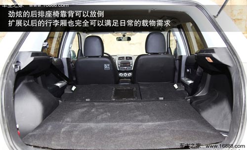 在空間方面,勁炫的表現就比較一般了。前排的乘坐空間還可以接受,185cm的體驗者頭部還能有一拳多的余量,但來到后排,頭部和腿部幾乎都已經沒有空間,也就算是勉強乘坐的水平,舒適度較低。在儲物空間方面勁炫也不夠理想,好在座椅可以完全放倒,靈活性方面還不錯。