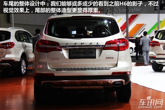 車尾的整體設計中,我們能夠或多或少的看到之前H6的影子,不過視覺效果上,尾部的整體造型更顯得厚重。尾燈的樣式并沒有什么新意,不過相對中庸的樣式或許才是大多數消費者所期待的。其內部采用了全LED光源,這樣的設計值得肯定!