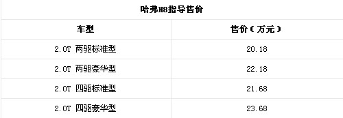 首先我們先來看一下哈弗H8的售價,售價區間為20.18-23.68萬元,共推出4款車型,其中還兩款為兩驅車型,兩款為四驅車型。四款車型均采用了2.0T的發動機,并且四款車型均采用了一臺6檔手自一體變速器。