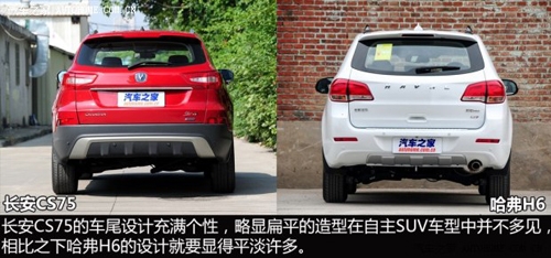 車輛尾部的設(shè)計兩款車型也是風(fēng)格迥異,其中長安CS75通過黑色的后包圍以及細(xì)窄的尾燈令整體造型更加扁平,而延續(xù)傳統(tǒng)設(shè)計的哈弗H6則要顯得瘦高一些。兩種風(fēng)格說不上誰好誰壞,只能說長安CS75給了消費者一個更前衛(wèi)、更時尚的選擇。