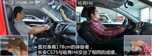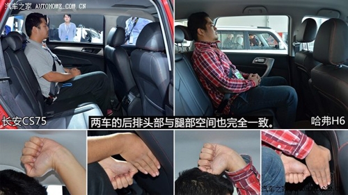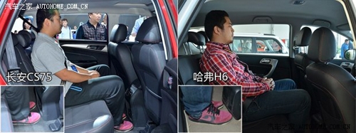對于身高178cm的體驗者而言,長安CS75與哈弗H6所提供的頭部以及腿部空間完全一致,至于后排中部乘客,兩款車型的表現(xiàn)也十分接近,平整的地板,充足的頭部與縱向空間都有助于提升乘坐的舒適性。