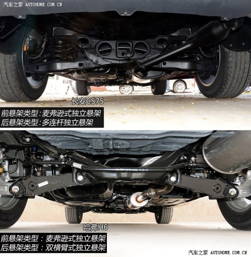 底盤懸架方面,首先需要肯定的是長安CS75與哈弗H6均采用了前后雙獨立懸架,不過從結(jié)構(gòu)上來看,長安CS75使用的是前麥弗遜與后多連桿的組合,而哈弗H6則為前麥弗遜、后雙橫臂,至于兩者孰優(yōu)孰劣還要等試駕過CS75再做評判。
