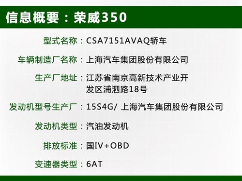 上汽乘用車在今年廣州車展期間正式推出了MG5 1.5T車型,與其同平臺(tái)的榮威350也將緊隨其后發(fā)布增壓版本。對(duì)于后者的推出時(shí)間上汽集團(tuán)乘用車公司榮威品牌市場(chǎng)運(yùn)營(yíng)部總監(jiān)劉濤先生表示:榮威350的1.5T車型將于2014年上市。近日網(wǎng)通社從國(guó)家環(huán)境保護(hù)部了解到:榮威350增壓版車型將采用與MG5相同的15S4G 1.5L增壓發(fā)動(dòng)機(jī),與之匹配的則是6速手自一體變速箱。