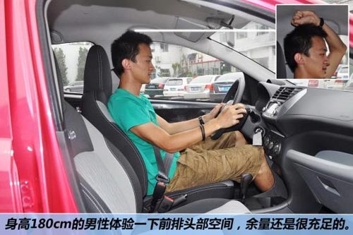 奔奔MINI的整車尺寸為3580*1570*1490mm,軸距則達到了2345mm,與QQ、F0、熊貓等同級車相當。這樣的軸距加上1490mm的車高,一般身高的乘客坐在其中都不會感覺到局促,能夠滿足日常使用的舒適度要求。