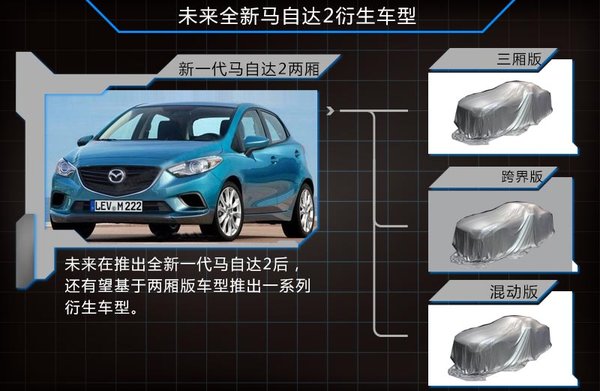 全新一代馬自達2除將照例推出常規的兩廂版與三廂版車型外,針對不同的細分市場,其還將基于該平臺衍生出相應的跨界車型和混合動力車型,在可以滿足更多購車人群需求的同時對未來自身銷量的增長也起到了積極作用。