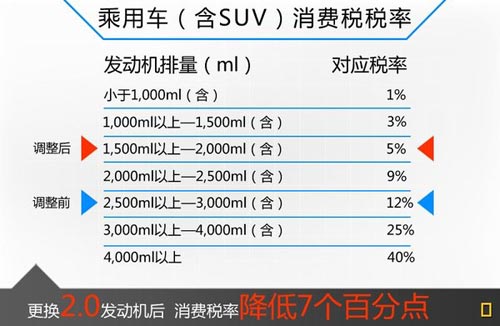 目前現款CTS搭載了一臺3.0L自然吸氣發動機,根據目前乘用車消費稅稅率其應繳納12%的稅額。而全新一代CTS換裝2.0T發動機后,其對應稅率則僅為5%,相較現款車型下降了7個百分點。根據目前3.0L車型44.8-48.8萬元的售價,未來全新一代CTS售價有望下調3萬元左右。