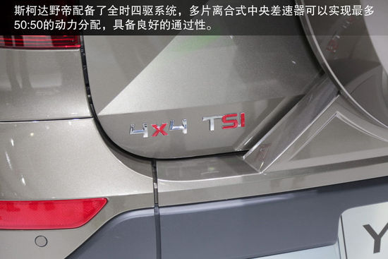 野帝搭載大家熟知的1.8TSI發(fā)動(dòng)機(jī),最大功率118kW,峰值扭矩250Nm,匹配的變速箱為6速DSG。至于1.4TSI發(fā)動(dòng)機(jī)的車型,發(fā)動(dòng)機(jī)最大功率為96kW,峰值扭矩為220Nm。出身PQ35平臺(tái)的野帝,采用與途觀完全相同的前麥弗遜后多連桿懸掛。斯柯達(dá)野帝配備了全時(shí)四驅(qū)系統(tǒng),多片離合式中央差速器可以實(shí)現(xiàn)最多50:50的動(dòng)力分配,具備良好的通過性。