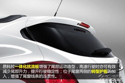 后窗轉型護板位于尾窗的兩側,增強了尾窗線條的連貫性。如果出于成本考慮,大可不必加入這兩塊沒有實際使用功能的塑料板,但通用沒有這樣做,為的是把昂科拉的外觀造型做到極致。