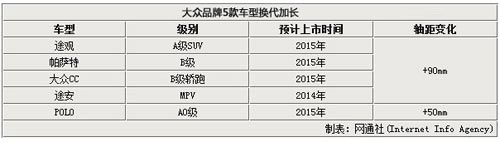 MQB模塊化平臺最大的優勢是可以有效節省研發成本,同時可縮短新車研發時間,另外也加快現有車型更新換代的速度。“到2014年,MQB平臺產能將升至200萬輛。而到2016年我們預計累計產量將翻倍,達到約400萬輛。”大眾CFO潘師介紹到,隨著產能的不斷提升,途觀、帕薩特、POLO等5款車型在兩年內均將基于MQB平臺進行換代。從上表中,我們可以看出,這5款車型的軸距均實現了范圍在50mm-90mm的加長,這樣的做法無疑將提供客更加舒適的乘坐空間。