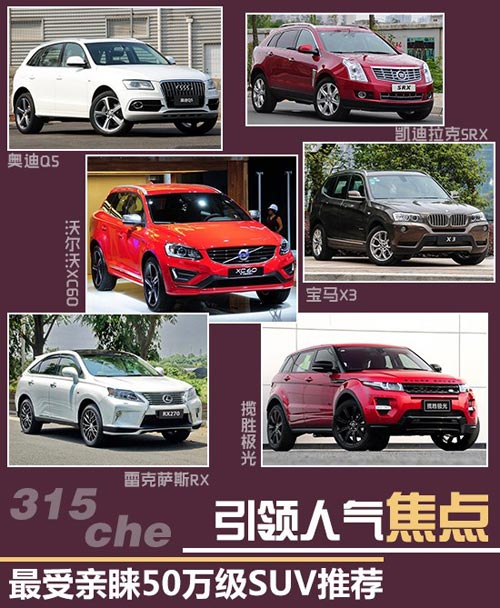 在J.D.Power“豪華車青睞度調查”中,寶馬、保時捷、路虎、奔馳、奧迪品牌位居前五名,沃爾沃、捷豹、凱迪拉克等緊隨其后。在廣大消費者的眼中,寶馬在動力和操控性上給人印象深刻;保時捷外形美觀獨特,駕乘樂趣獲得高度贊同;路虎在造型設計、質量可靠性上大放異彩;奔馳在乘坐舒適性上廣為人知;奧迪在產品豐富度、質量可靠性方面吸引眼球;沃爾沃在安全性能上技壓群雄。這些備受推崇的品牌中,50萬級SUV的關注度顯然是非常突出的,下面就隨編輯一起來領略一下這些引領人氣焦點的SUV車型的風采吧!