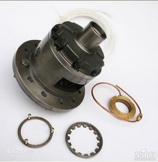 差速鎖:差速鎖的作用是當(dāng)一個(gè)驅(qū)動(dòng)輪打滑時(shí),將差速器殼與半軸鎖緊成一體,使差速器失去差速作用,可以把全部扭矩轉(zhuǎn)移到另一側(cè)驅(qū)動(dòng)輪上。