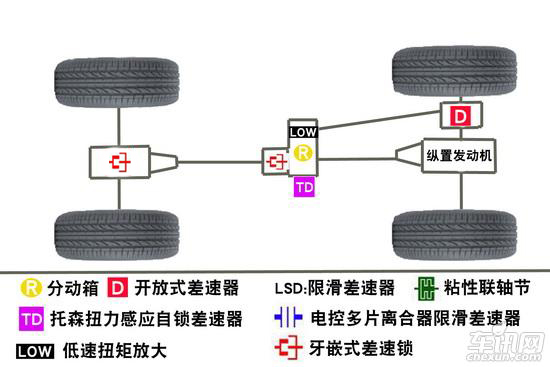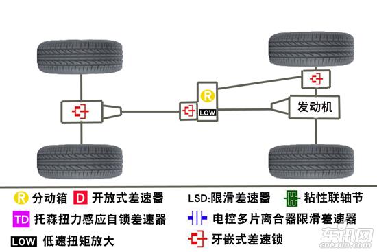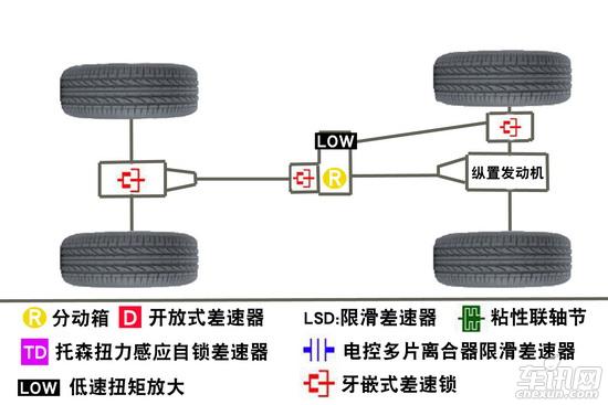優(yōu)點(diǎn):在越野路況可以使車輛所有車輪得到有效動(dòng)力,在惡劣情況下擺脫困境;