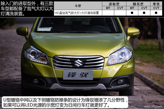 外觀方面,長(zhǎng)安鈴木S-CROSS鋒馭保留了大量的概念車(chē)元素,全新的外觀設(shè)計(jì)時(shí)尚動(dòng)感。特別是加大的進(jìn)氣格柵、尺寸更大的前大燈都突出展現(xiàn)了都市SUV的風(fēng)貌。漂亮的LED行車(chē)燈,金屬質(zhì)感的下護(hù)板、車(chē)頂?shù)慕饘傩欣罴艿榷硷@得比現(xiàn)款車(chē)型更加協(xié)調(diào)。