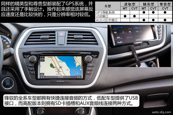 在內(nèi)飾設(shè)計(jì)上,鋒馭也有著不錯(cuò)的表現(xiàn)。儀表盤(pán)顯得更具動(dòng)感,自動(dòng)空調(diào)、多功能顯示屏幕、漂亮的氣氛燈效果以及新式的方向盤(pán)都增加了整車(chē)的易用性和舒適度,酷黑內(nèi)飾搭配銀色鍍鉻裝飾條則賦予了鋒馭豐富的層次感。