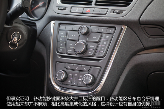 內(nèi)飾方面,別克Encore延續(xù)別克車(chē)系的精致高檔的風(fēng)格,仍舊是熟悉的環(huán)抱式布局,采用了獨(dú)特的馬鞍棕色調(diào),營(yíng)造出較為舒適高雅的氣息。中控臺(tái)的按鍵較多,布局上也比較密集,要熟悉各種功能需要一定的時(shí)間,然而在做工和用料方面,則體現(xiàn)出較高的品質(zhì)感。