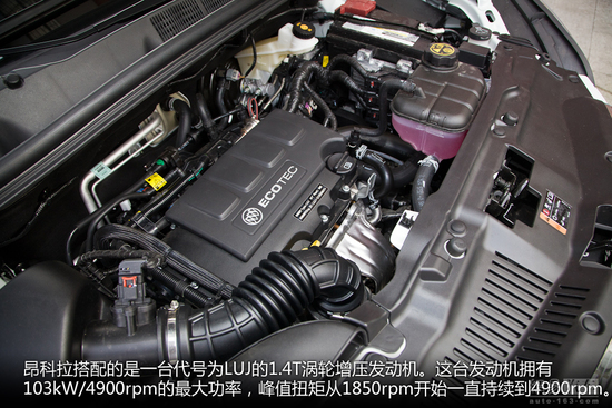 動(dòng)力方面,昂科拉所搭載的是一臺(tái)1.4T渦輪增壓發(fā)動(dòng)機(jī),這款代號(hào)為L(zhǎng)UJ的發(fā)動(dòng)機(jī)擁有103kW/4900rpm的最大功率,峰值扭矩從1850rpm開(kāi)始釋放,一致持續(xù)到4900rpm。就賬面數(shù)字而言,這款發(fā)動(dòng)機(jī)與大家所熟悉的大眾EA111系列1.4T單增壓發(fā)動(dòng)機(jī)接近,雖然最大扭矩稍低,但最高功率更大,而且最高功率出現(xiàn)轉(zhuǎn)速更低,而且扭矩平臺(tái)也更為寬廣。從發(fā)動(dòng)機(jī)82.6毫米的長(zhǎng)沖程設(shè)計(jì)不難看出,這款發(fā)動(dòng)機(jī)偏重于低扭輸出,更符合當(dāng)下都市駕車(chē)環(huán)境。